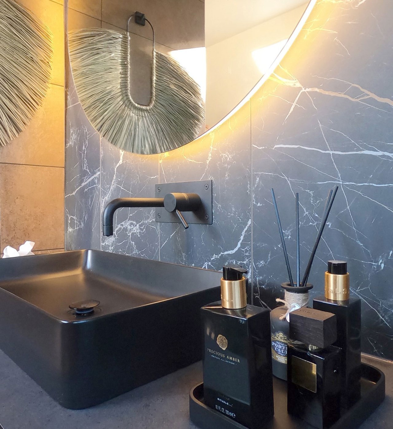Blant produktene hun valgte var både matt sort toalett, innebygget matt sort servantbatteri og sort dusj. Og detaljene er ikke overlatt til tilfeldighetene, det ble til og med sort toalettpapir!